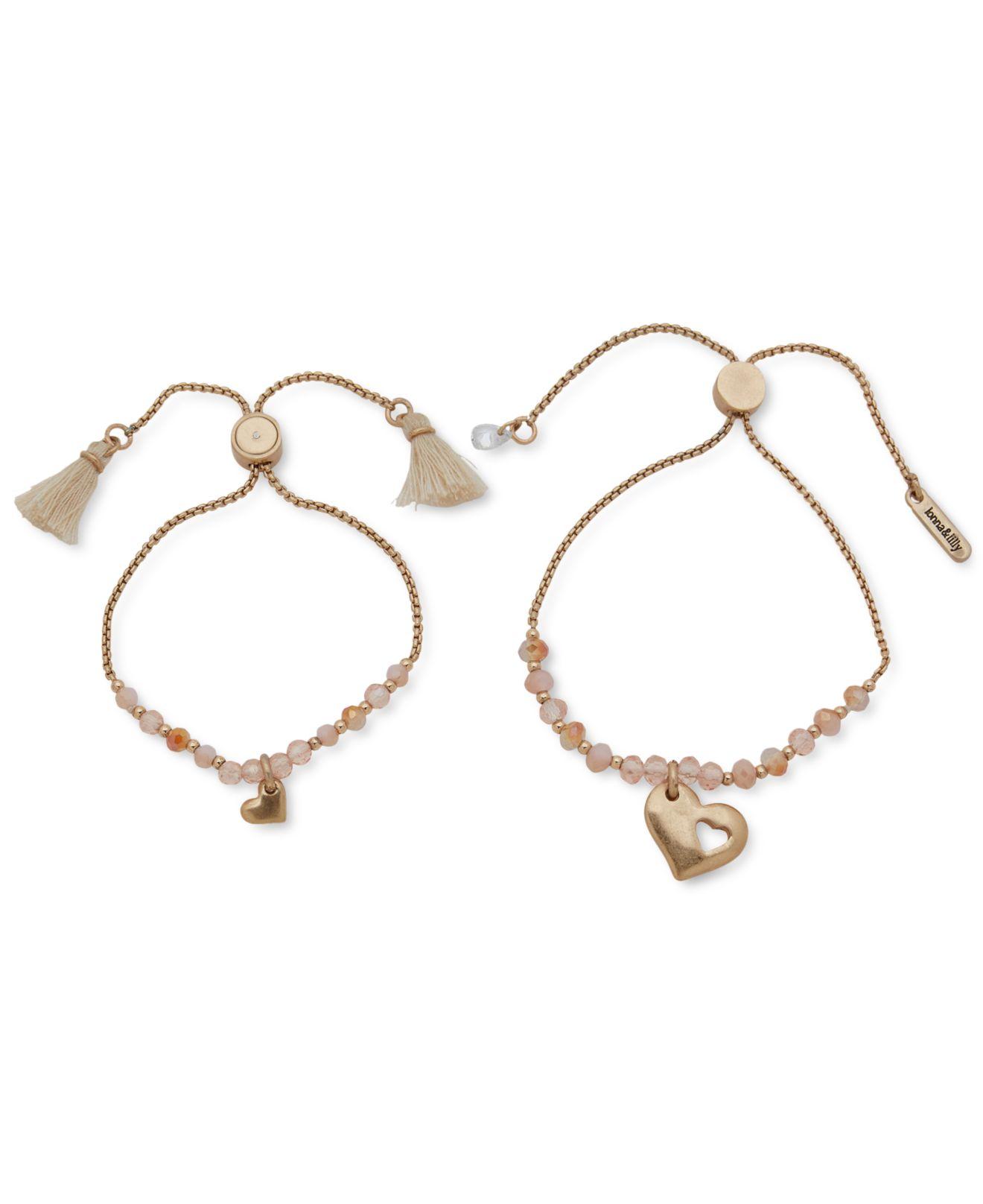 Lonna Lilly Gold Tone 2 Pc Set Bead Heart Charm Mom Mini Bolo Bracelets In Metallic Lyst